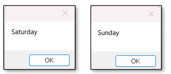この 変数DayOfWeek は、DateTime型変数の日時を表すカレンダーデータから「曜日」を英語で表記したデータ値を出力してくれます。例: Monday とか