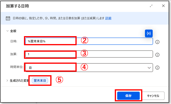 ⑤ 生成された変数は、今回は 翌月末日 といった名前に変数名を変更します。