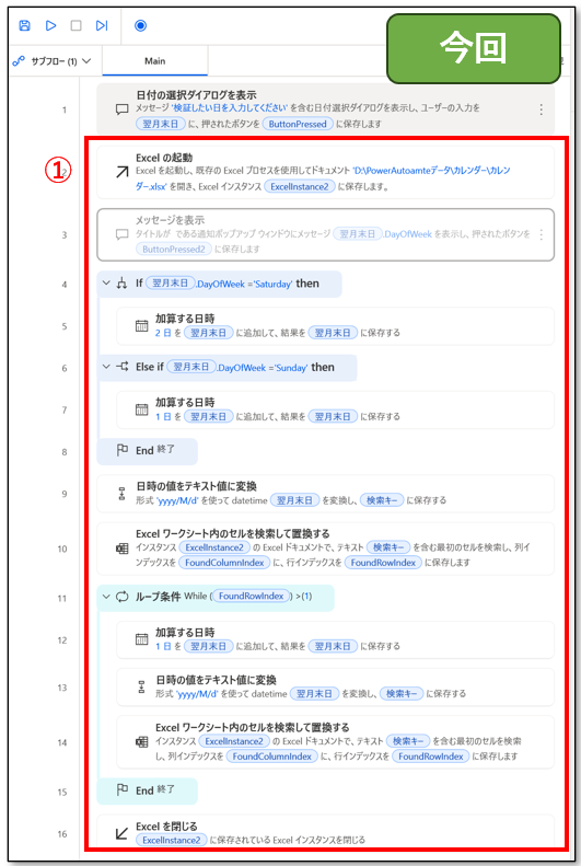 今回はカレンダー関連で良く使われる、Power Automate for desktop で土日や祝日そして個人で設定する休日などを回避しつつ、翌営業日としての設定方法などの考え方について学びました。